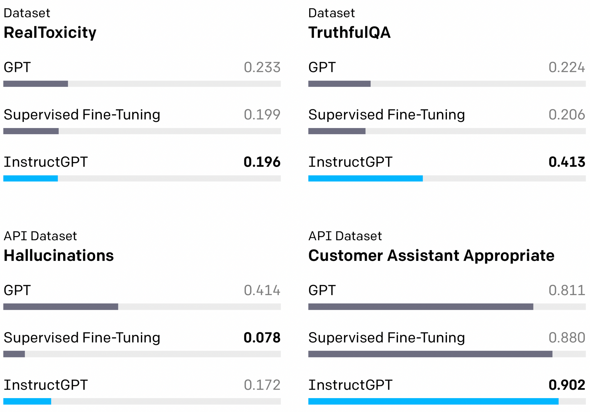 Như chúng ta có thể thấy, việc học tự động từ dữ liệu lớn giúp mô hình ngôn ngữ có được một "kiến thức" tuyệt vời để trả lời hầu hết mọi câu hỏi của người dùng. Tuy nhiên, do dữ liệu quá lớn và không thể kiểm soát chất lượng của dữ liệu nên mô hình cũng có thể sẽ học được những kiến thức, thông tin sai lệch (vốn tồn tại rất nhiều trên internet và tài liệu). Trước ChatGPT, đã có rất nhiều mô hình AI khác nhận một kết cục không mấy tốt đẹp khi đưa ra những thông tin không phù hợp. Nổi tiếng nhất có lẽ là trường hợp của Tay (Microsoft, 2016) khi đã "kết thúc sự nghiệp" của mình chỉ trong vòng 24 giờ sau khi được release trên Twitter bởi vì đã có những phát ngôn độc hại (https://www.cbsnews.com/news/microsoft-shuts-down-ai-chatbot-after-it-turned-into-racist-nazi/).