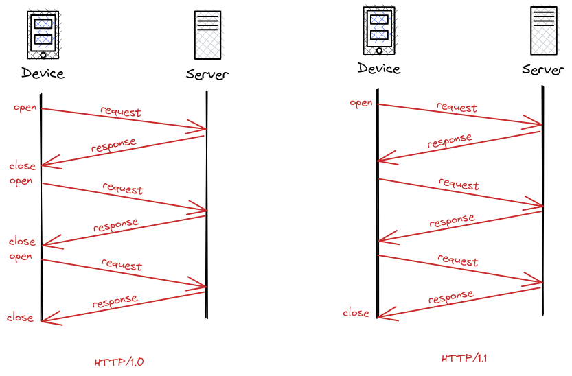 - HTTP/1.1 có một bước tiến quan trọng đó là cho phép thực hiện nhiều request và response trên một TCP connection duy nhất, điều này giúp HTTP/1.1 nhanh hơn HTTP/1.0 rất nhiều. Mặc khác, HTTP/1.1 cũng cho phép streaming dữ liệu thành từng phần (chunks streaming) một cách dễ dàng hơn.