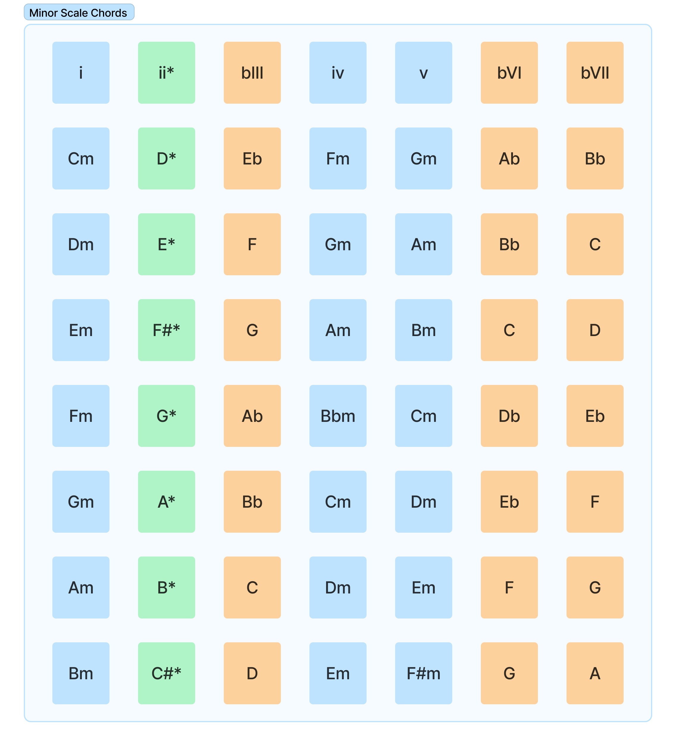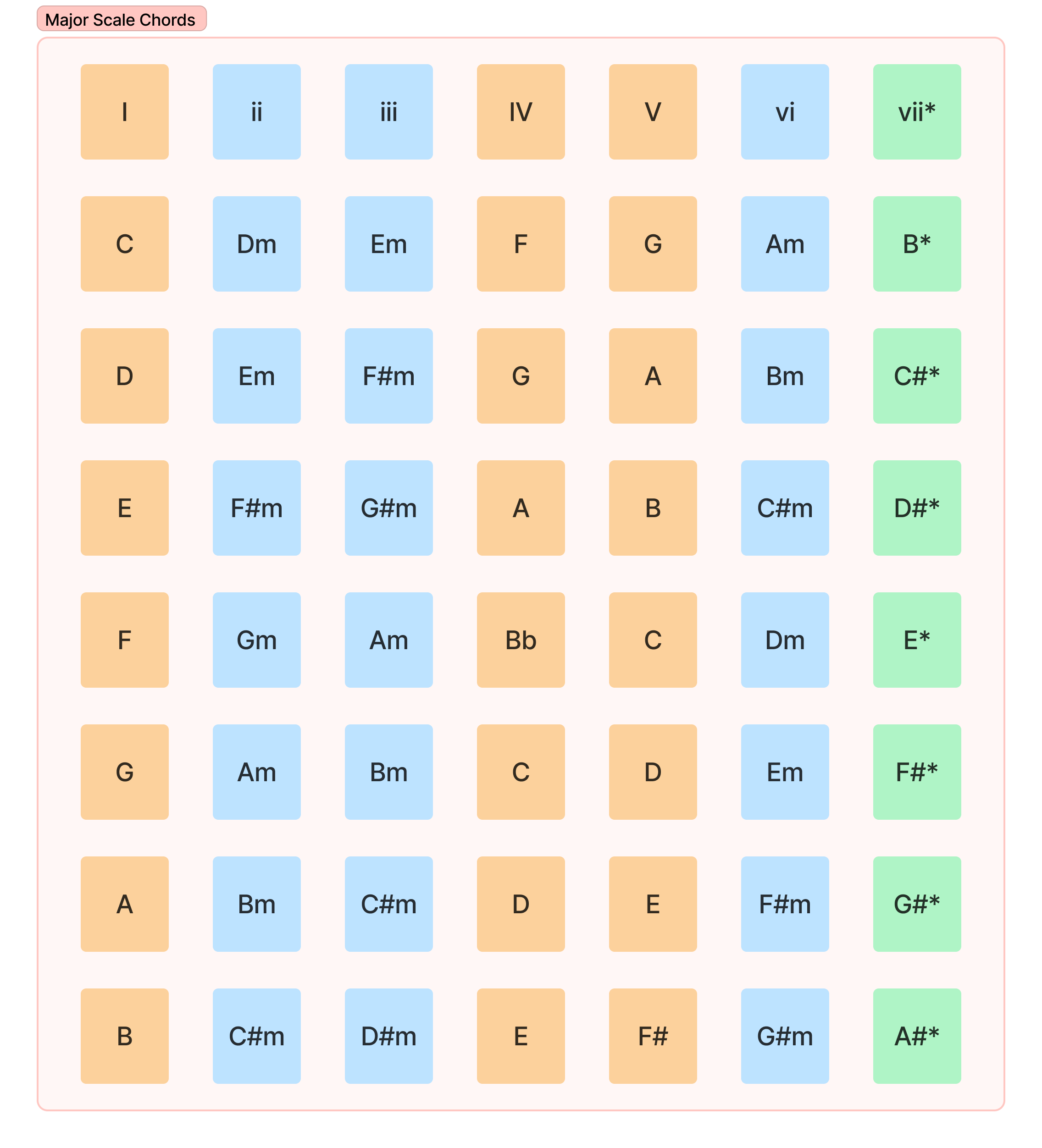 Basic Music Theory Cheat Sheet Photo by Namroud Gorguis / Unsplash C major (Septonic): C - D - E - F - G - A - BC minor (septonic): C - D - Eb - F - G - Ab - BbC major pentatonic: C - D - E - G - AC minor pentatonic: C - Eb - F - G - Bb