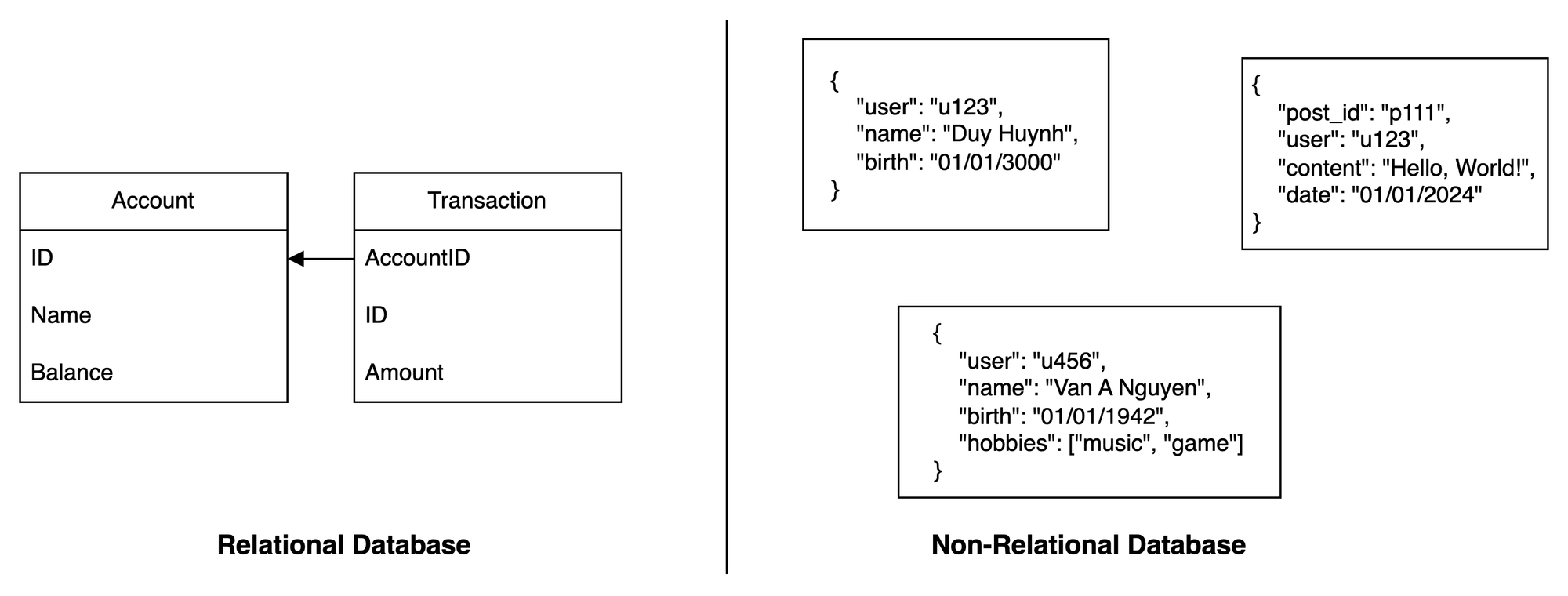 Imagine you're developing an online banking system. This system requires complex transactions, like transferring money from one account to another. The database must maintain absolute consistency (every transaction is accurately recorded and the balance is always correct). The data here is highly structured and relational – customers have accounts, and accounts have transactions. In this scenario, we should use relational databases because: