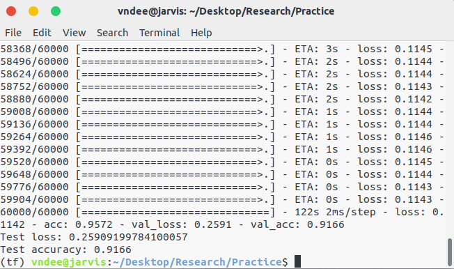 Kết quả cho thấy mô hình đạt độ chính xác khá cao chỉ sau 10 lần training (%91.66\%%). Ta có thể so sánh với một số classifier khác tại Fashion-MNIST Benchmark.