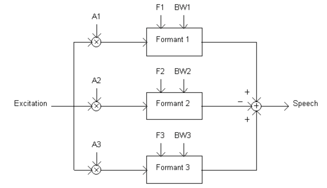 Tổng hợp Formant là một phương pháp sử dụng các quy luật được quy định từ trước để tạo ra âm thanh giống với tiếng nói nhất có thể. Thông thường một bộ tổng hợp formant thường là một hệ thống các bộ lọc (filter) có chức năng khác nhau. Tín hiệu đầu vào thông qua các bộ lộc này sẽ được điều chỉnh cho từng dạng âm thanh nhất định. Ví dụ sẽ có những bộ lộc giúp điều chỉnh âm giai, tần số, và những bộ lộc giúp điều chỉnh âm thanh nhiễu,.. Các bộ lọc này có thể được đặt song song hoặc nối tiếp nhau, hay thậm chí là kết hợp cả hai tuỳ thuộc vào người thiết kế. Nhưng tiếng nói tổng hợp được từ phương pháp này thường thiếu tự nhiên và còn nhiều hạn chế.