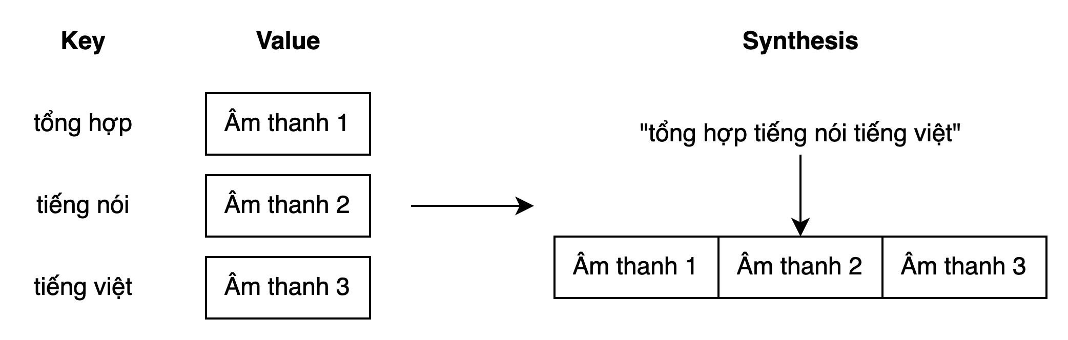 Tổng hợp ghép nói là phương pháp đạt được hiệu quả cao trong một số bài toán cụ thể. Ở phương pháp này, ta sử dụng những tiếng nói đã được thu trước và lưu trữ trong cơ sử dữ liệu dưới dạng key-value. Khi cần sinh tiếng nói, ta chỉ cần chọn ra những âm thanh phù hợp và ghép lại với nhau thành âm thanh hoàn chỉnh. Tuỳ theo cấp độ khác nhau mà chúng ta có thể thực hiện ghép nối từng âm tiết, tiếng, từ, hoặc là cả câu, cả đoạn văn.